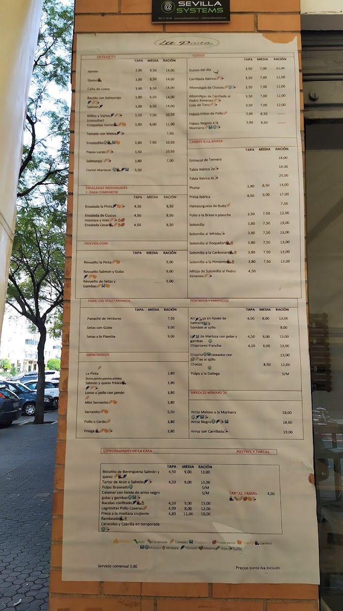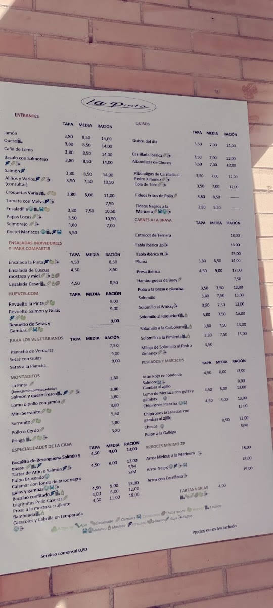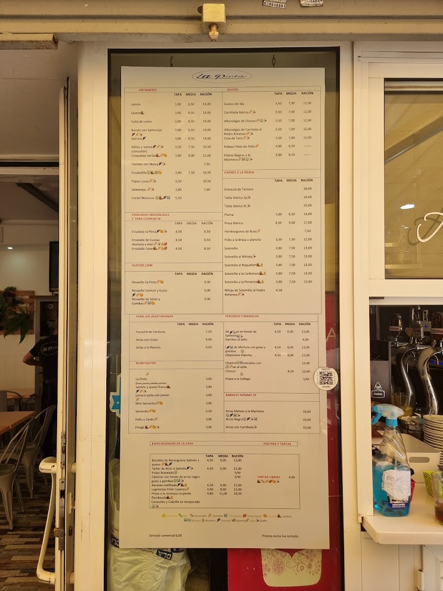 Bar La Pinta Menu